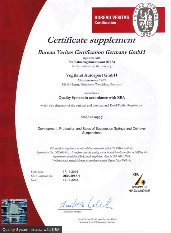 I nostri prodotti sono omologati TÜV; il nostro Sistema di Gestione della Qualità è verificata dall'Ufficio federale di veicoli a motore, che è fondamentale per il raggiungimento di certificazione TÜV.